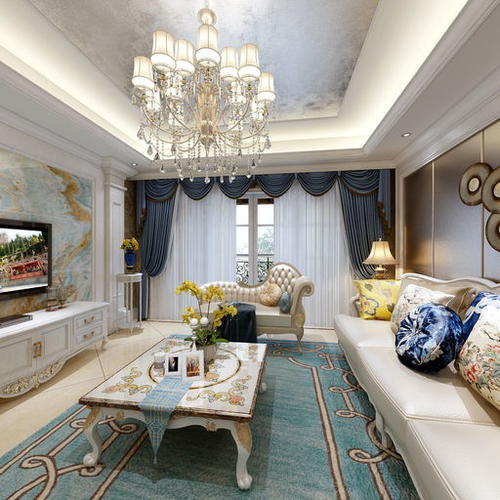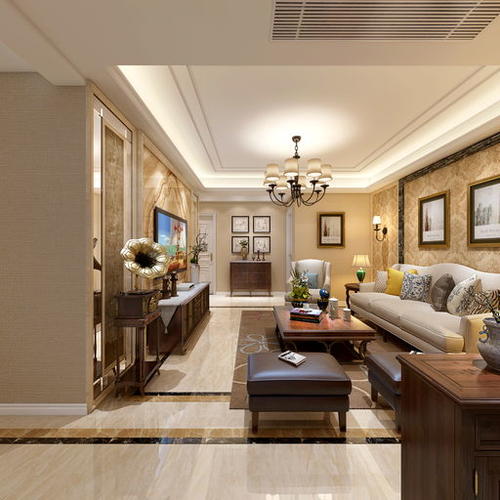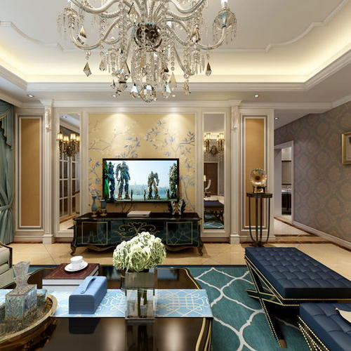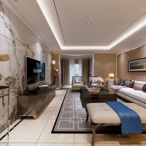 轻奢风格客厅360全景效果图 [Q2019010004]